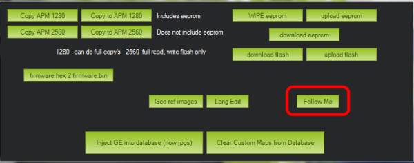 - In the Mission Planner, enter Control-F, which will open the following window. Click on “Follow Me”