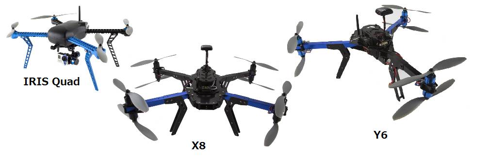 One of the first steps in using Copter is to decide on the frame. Shown below are three options from 3DRobotics but there are hundreds of other choices. This page will hopefully give some guidance on the choices available.