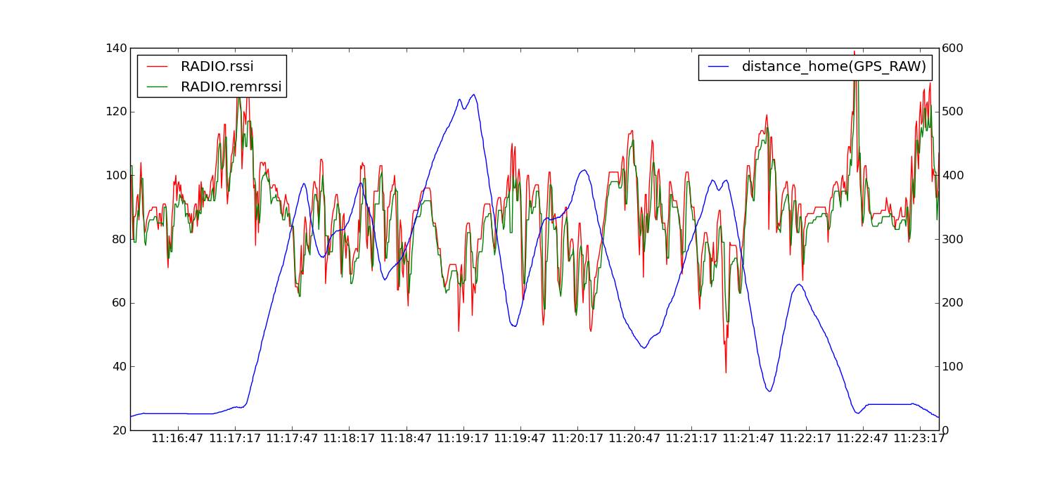 Here is a typical graph of the RSSI levels for a flight at my local flying field.