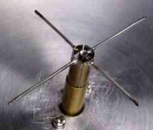 The turnstile antenna is a pair of crossed dipoles, fed 90deg out of phase with each other, thereby generating circular polarisation.
