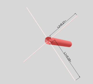 The one element is typically around 0.21 wavelength per half, while the other is around 0.25 wavelength.