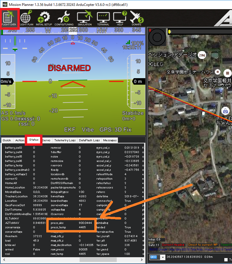 Real-time pressure and temperature from the barometer are sent to the ground station. If using Mission Planner they are visible on the Flight Data >> Status tab, look for “press_abs2” and “press_temp2”.