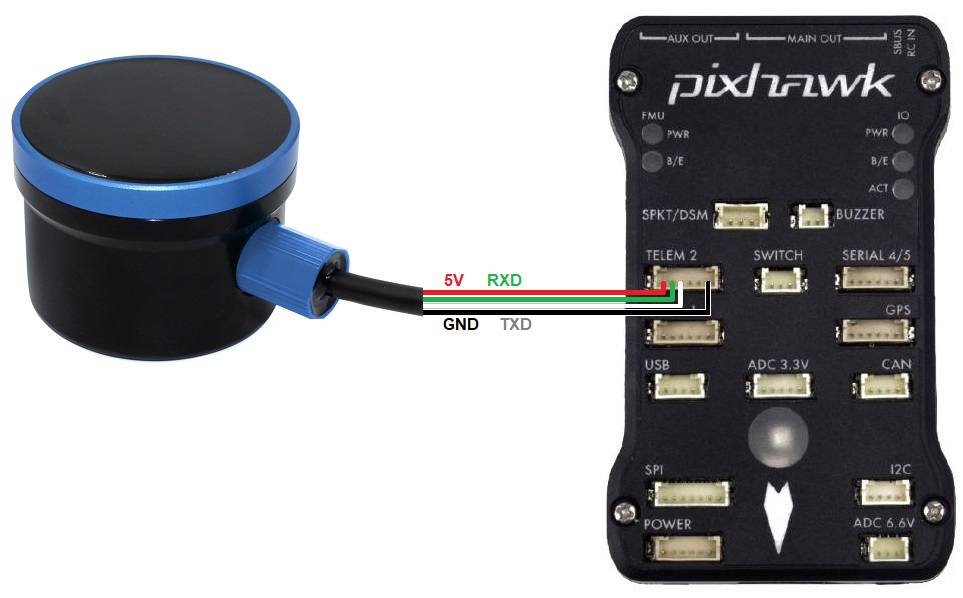 For a serial connection you can use any spare Serial/UART port. The diagram below shows how to connect to SERIAL2.
