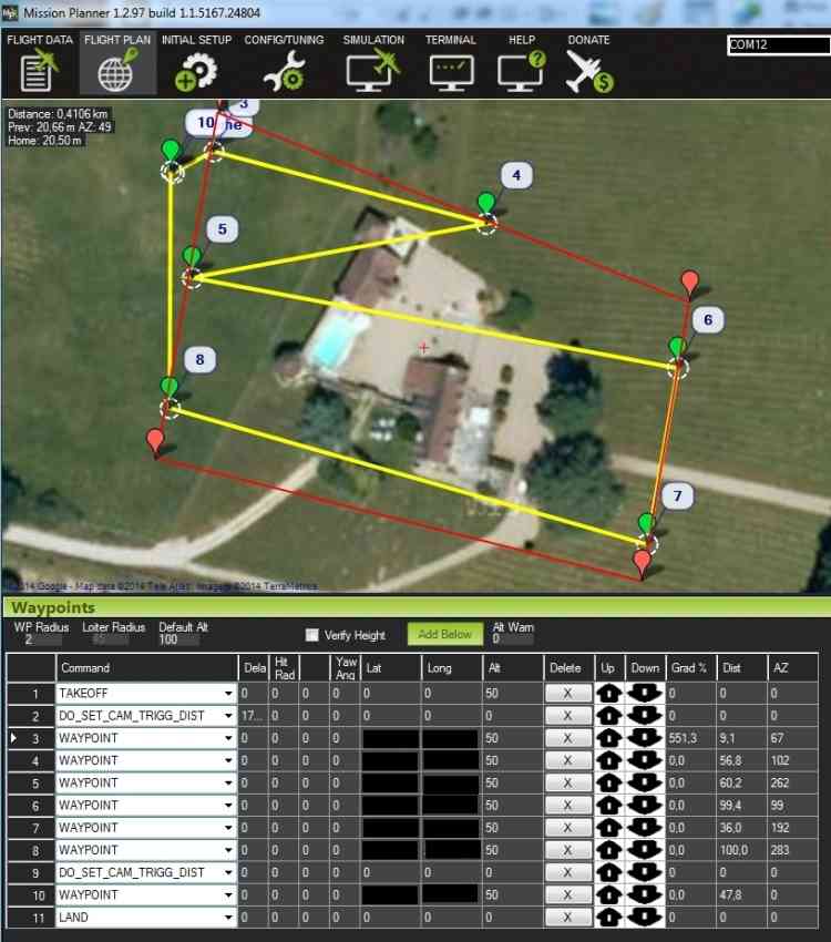 The final mission with waypoints and camera triggers looks like this: