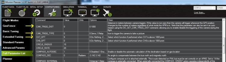 - Open Mission Planner and then click on CONFIG/TUNING | Full Parameters List