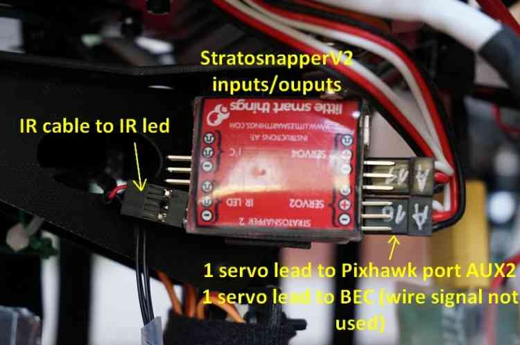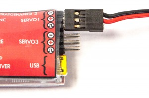 Note the two servo leads are connected on the input side of Stratosnapper; one of these is to power the IR module.