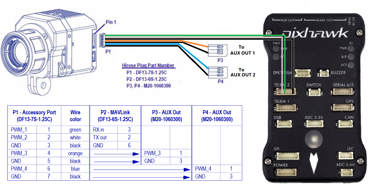 - Flir Cable Accessory Cable (for Pixhawk1 using DF13 connectors) or Tuffwing.com’s Flir Vue Pro trigger and geotag cable (for most other autopilots using JST connectors)