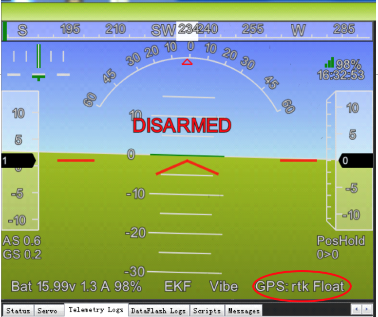 - The RTK messages from base station is sent to vehicle by MAVLink message. In the main HUD of Mission Planer, the GPS status should display RTK Fix or RTK Float
