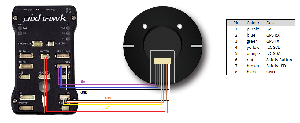 Below is a diagram showing how to connect the Here+ to a Pixhawk.