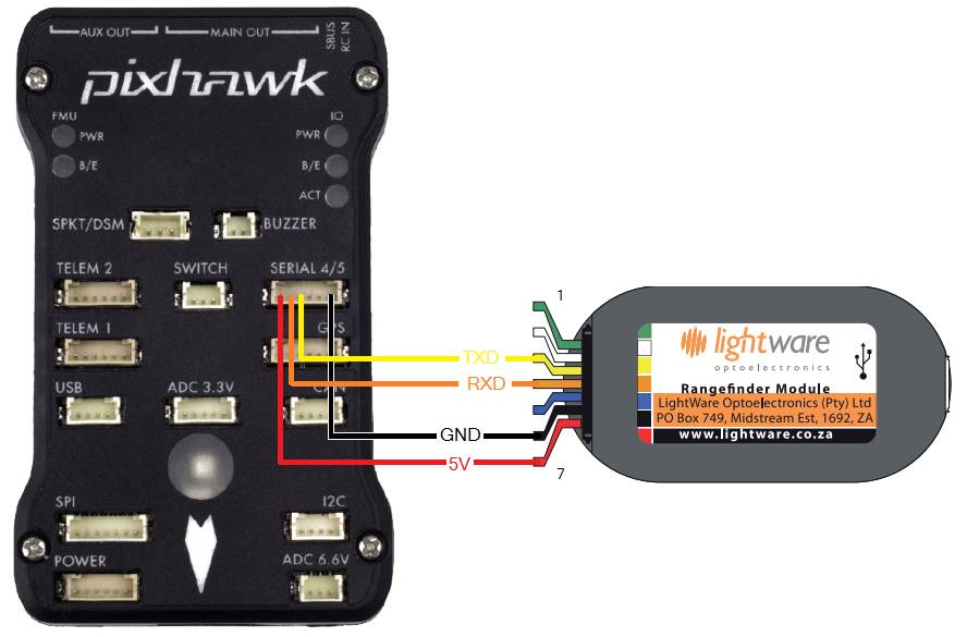 - RNGFND_TYPE = 8 (LightWareSerial)