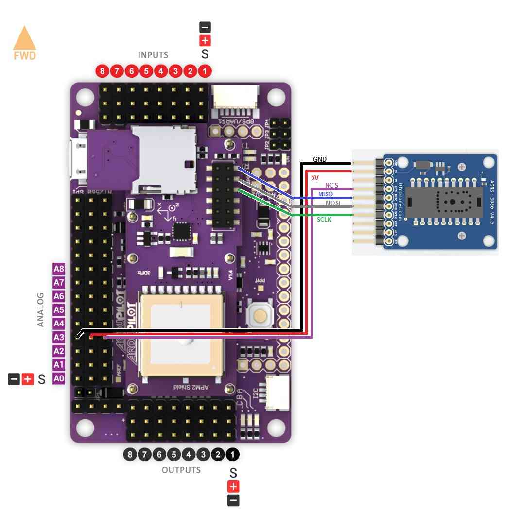 - Connect VCC, GND, MISO, MOSI, SCLK and NCS pins as shown in the diagram below