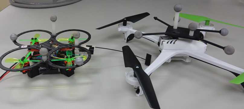 First, you need to place markers on the drone. It is very important to place markers so that they form a stereoscopic, asymmetrical shape. Please refer to OptiTrack rigid body marker placement for details.