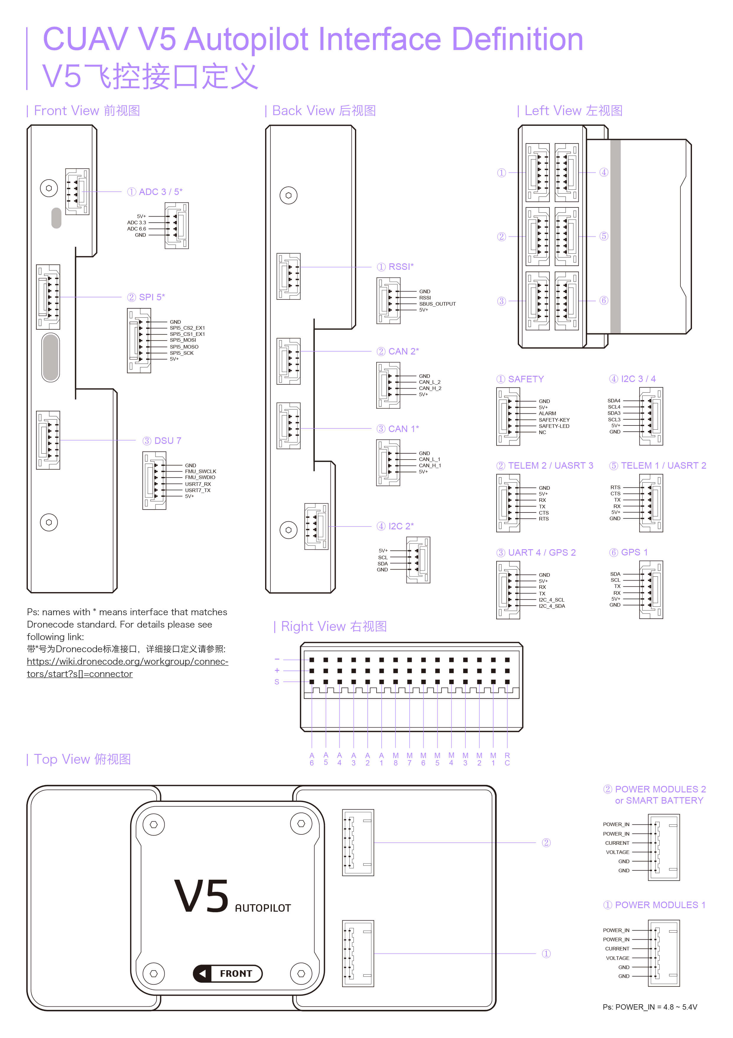 The CUAV v5 is an advanced autopilot designed and made by CUAV. The board is based on the FMUv5 open hardware design, with further attribution here. It is intended primarily for academic and commercial users.