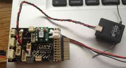 - Then connect the tiny Spektrum Satellite receiver to the special “Spektrum” connector on the Pixhawk.