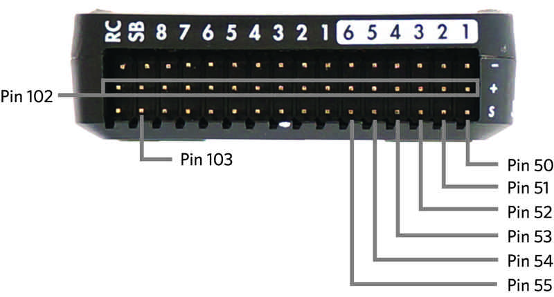 Virtual Pin 103: RSSI (Received Signal Strength Input) input pin voltage (SBus connector output pin). This is the voltage measured by the RSSI input pin on the SBUS-out connector (the bottom pin of the 2nd last servo connector on the 14 connector servo rail).