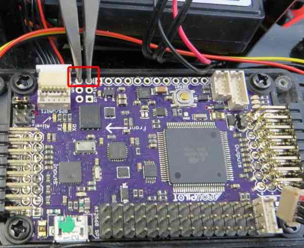 - Now remove the jumper and cycle the power of the APM 2.5 board.