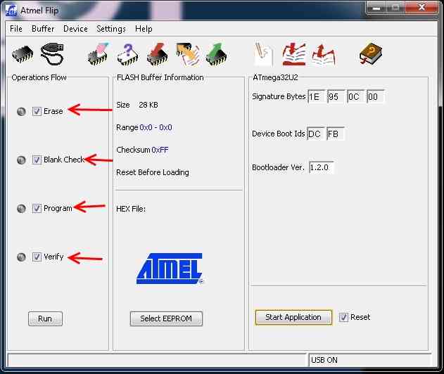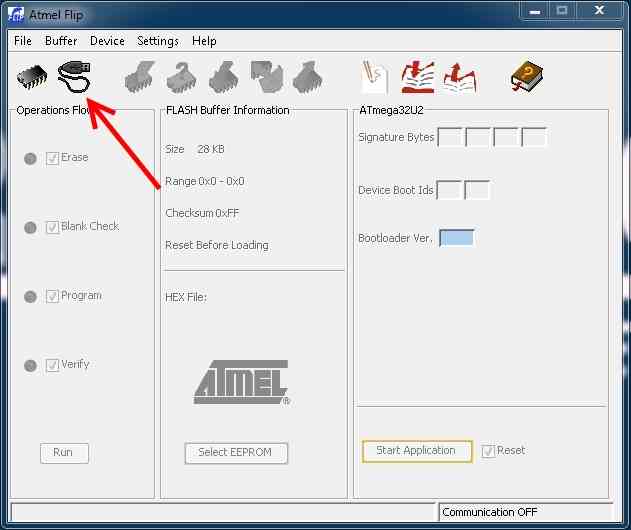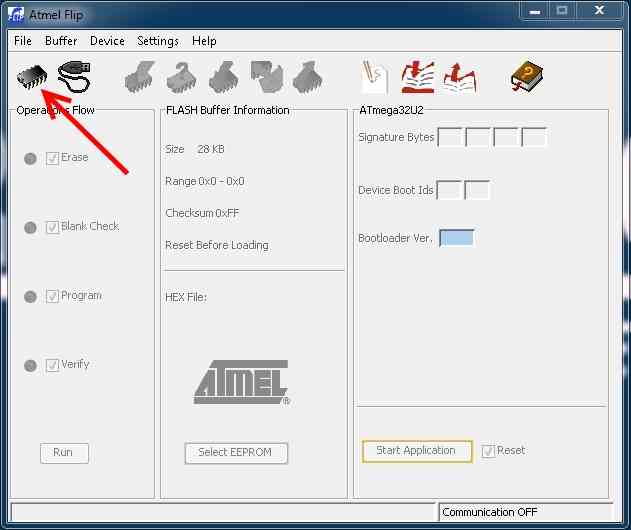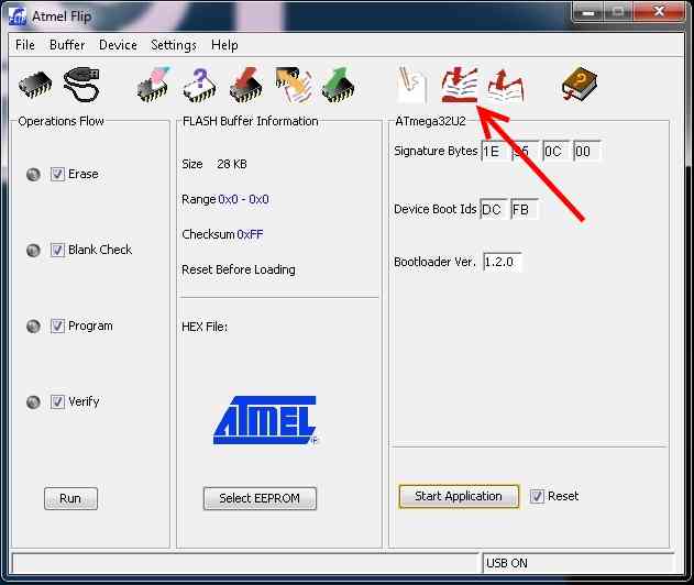 - Download and install Flip, click **here**. - The firmware (HEX file) you want to load can be downloaded here.