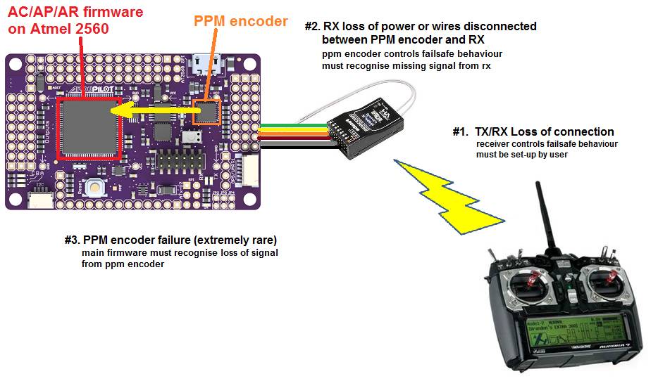 Also note that this has nothing to do with losing the radio connection between the transmitter and the receiver. The receiver’s behaviour when it gets out of range depends on the transmitter/receiver hardware and setup. So make sure to go through all the scenarios before flying
