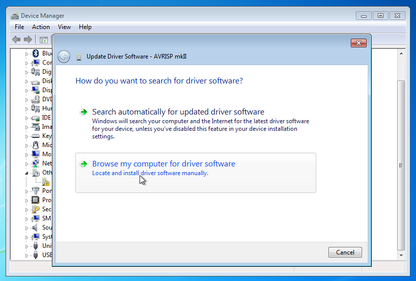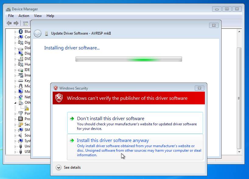 Plug in the AVRISP mkII and Install the drivers for AVRISP mkII as follows: