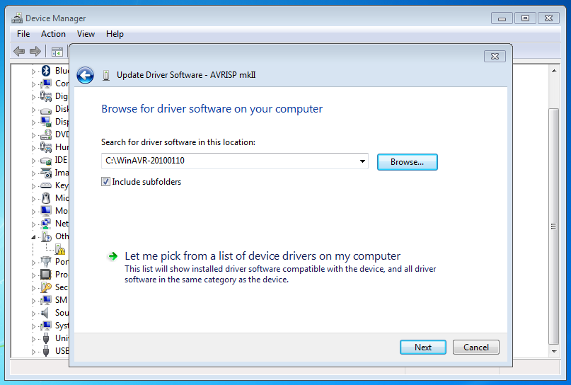 Browse to the folder where WinAVR is installed (e.g. C:WinAVR-20100110)