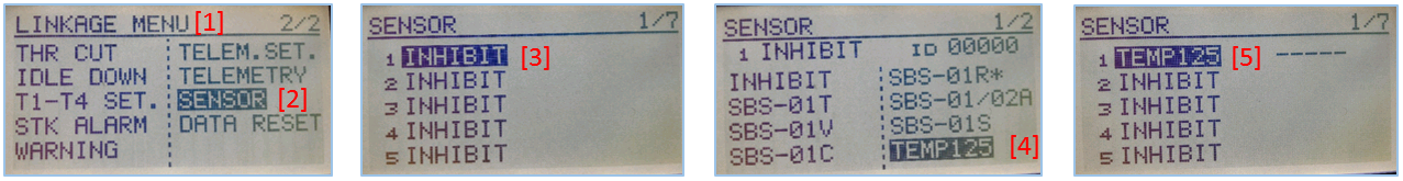 - Goto “SENSOR” [5] and choose “TEMP125” [6] and confirm with “RTN”.