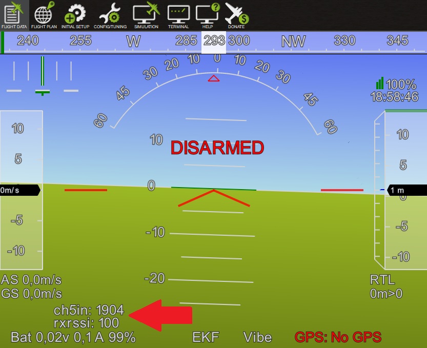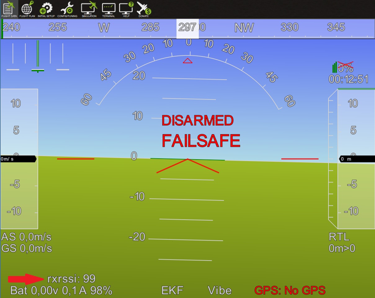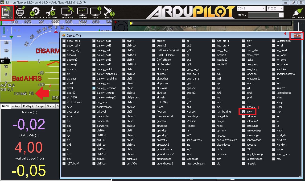 Displaying the RC receiver’s RSSI value in MissionPlanner’s HUD¶