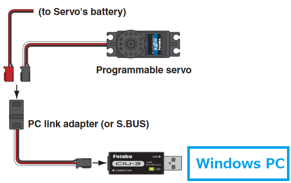 - The Futaba CIU-3 USB Interface is also recommended to allow easy configuration of the servos (online manual)