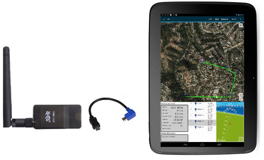 Connecting the radio to an Android tablet using the L shaped micro USB cable (which should have been included with the radio). Then follow the directions in your preferred Ground Station app.