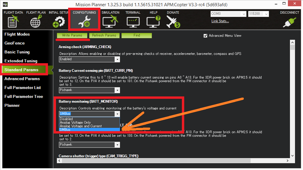 ArduPilot supports two types of “smart batteries” that communicate using SMBus, the Maxell battery and the Solo battery. While not yet very common, smart batteries are easier to attach and detach from the vehicle and are capable of providing more information on the state of the battery including capacity and individual cell voltages (not yet supported).