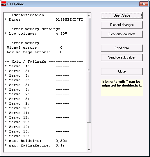 - To complete the SRXL activation on B/D port click “Close” in the “RX Options”-Window and “Close” in the “RX/RF DataManager”-Window.