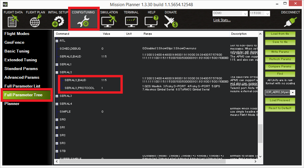 Set-up through the Mission Planner (MAVLink protocol)¶