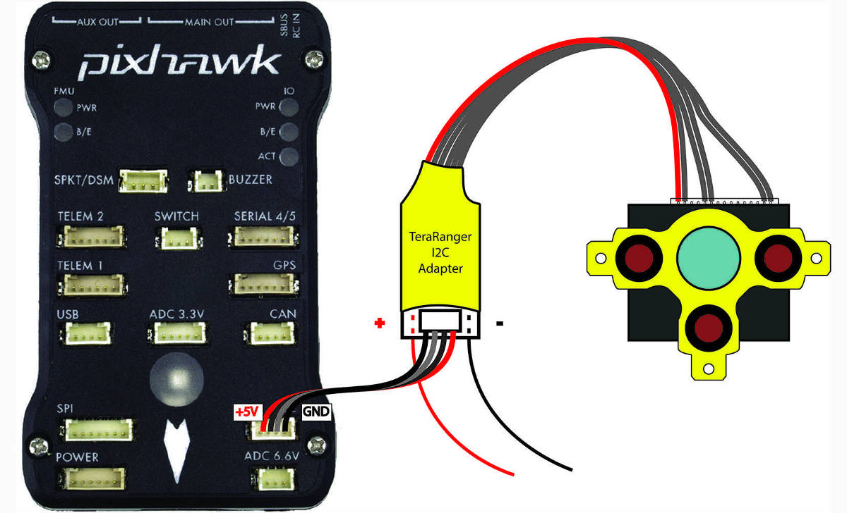 The TeraRanger One sensor can be easily connected to the Pixhawk with the TeraRanger I2C adaptor. Then it’s nearly a plug&play solution: