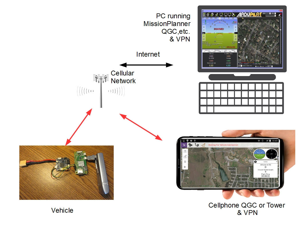 Since most cellular coverage is directed to cover only 200-300 feet AGL, except in metropolitan areas with high rise buildings, flight (ArduPlane/ArduCopter) applications may experience coverage issues at higher vehicle altitudes.