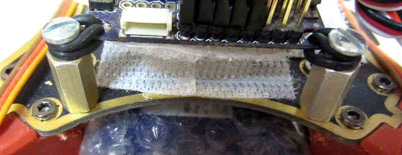 - Simply put a 3/4 inch square of adhesive backed Kyosho Zeal Gel under each corner of the flight controller.