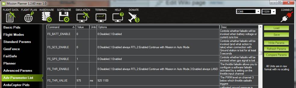 All Failsafe Parameters can be observed or set from the Advanced Parameter List.