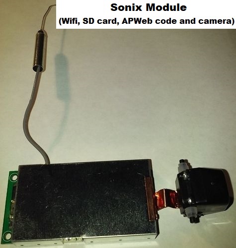 Sonix board containing the WIFI, SD card, APWeb, and OmniVision OV9732 video sensor