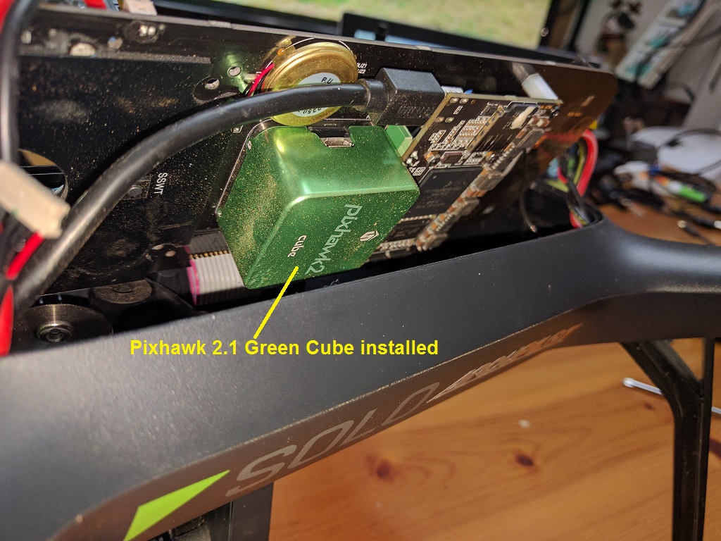 The Pixhawk 2.1 Green Cube (or a traditional Cube with the internal jumper set for 5 volts) is currently required for safe and reliable use of ArduCopter 3.5.0 and higher on a 3DR Solo. You can purchase the Green Cube from Jesters Drones or directly from ProfiCNC. The Cube has significantly more advanced components. This includes 3 temperature controlled IMUs and the 5 volt signalling the Solo needs to operate safely. If you already have a Cube, you can set an internal solder jumper to 5 volt signalling and use it in your Solo. The Green Cube comes with this jumper pre-set for 5 volts.