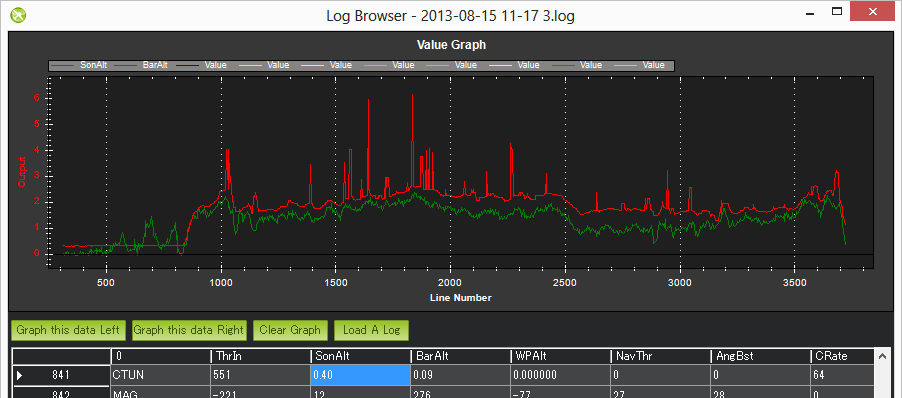 If you are having problems with excessive noise on your sonar as shown in the dataflash log below (sonar is in red, baro is in green)