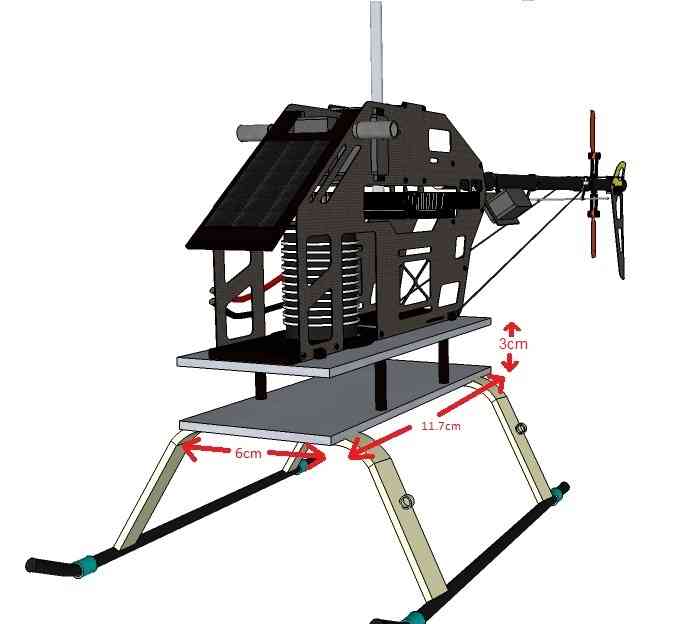 - Attach one carbon fibre plate to the body, the other to the landing gear