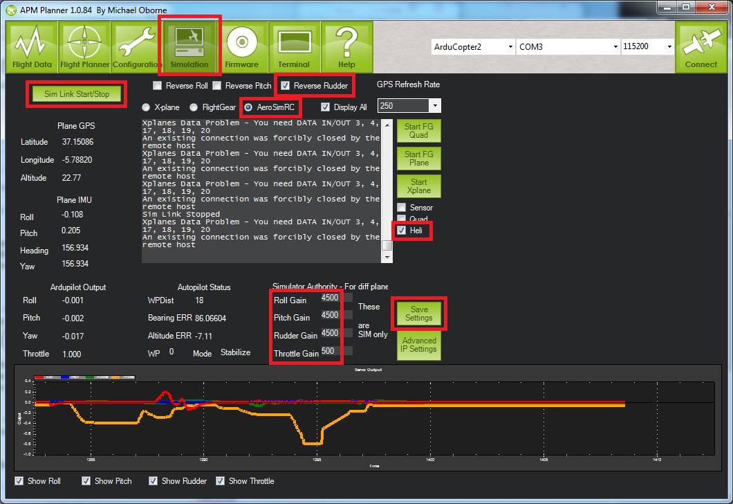 - push SimLink Start/Stop button, you should see “Sim Link Started”