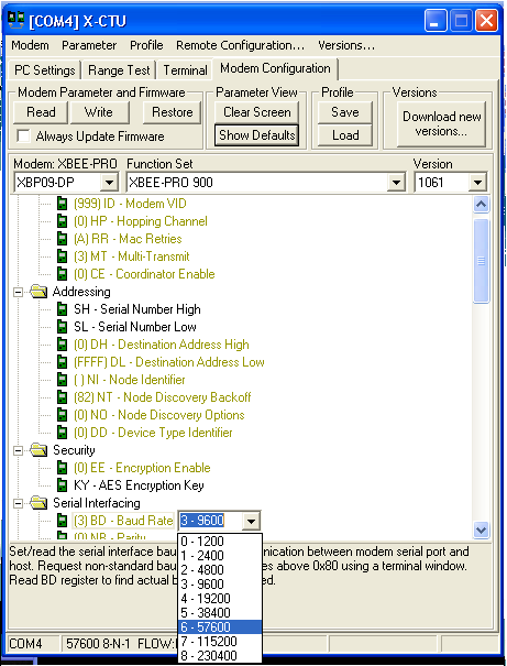 - Open X-CTU make sure Baud Rate is set to 9600